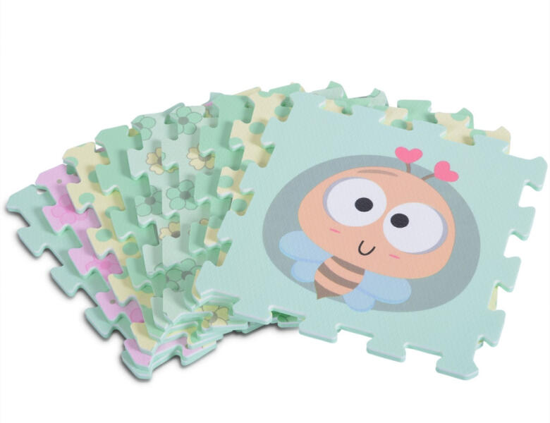 A szivacs puzzle nem csak a gyermekek tetszését nyeri majd el, de egyben a szülőkét is. A nagy, puha puzzle-elemek segítségével a gyerekszobába kirakhatunk szőnyeget vagy akár falvédőt is. A különleges puzzle alkotóelemeket még akár 3 dimenzióban is összeállíthatjuk. A szett összesen 9db színpompás alkotóelemet tartalmaz. Ideális a színfelismerés és a finommotoros készségek fejlesztésére. Alkalmas 10 hónaposnál idősebb gyermekek számára. Jellemzők: - Könnyedén összeilleszthető - Könnyű és puha - Ideális játékra, falvédőnek vagy lépőfelületnek - 3D kocka is készíthető belőle Tartalma: - 9 db puha habtapi Méretek: Puzzle elemek mérete: 31x31cm Puzzle elemek vastagsága kb. : 1cm Összeállított méret kb. : 93x93cm