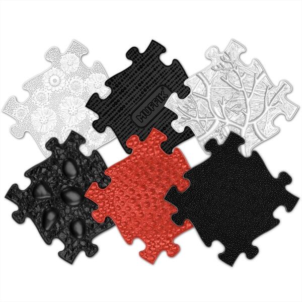 MUFFIK ortopédiai puzzle szőnyeg - Bébi szett, fekete-piros-fehér, 6 db (MFK-023-3)