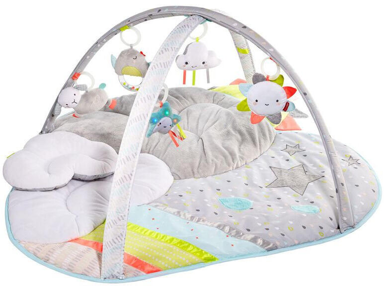 Jellemzők: Korhatár 0+ Frissített Silver Lining Cloud Play Gym: tartalmazza az újonnan áttervezett felhő játékot Fejlesztő tevékenységek: zenélő bárány, világító csillag, felhő-nyikorgó szalagokkal, madárcsörgő és napsütéses babatükör. A bárány vidám dallamot játszik A csillag színes LED fényekkel rendelkezik A túlméretezett szőnyeg párnázott kényelmet és többféle textúrát kínál az érzékszervi fejlődéshez. Plüss és támogató felhő a pocakoláshoz Összhangban a Skip Hop Silver Lining Cloud kollekcióval 34L x 41W x 19H (cm): 86L x 104W x 48H Anyag és ápolás: Készlet: 1 db: Felnőtt általi összeszerelést igényel 5 db nem cserélhető alkalikus gombelemet tartalmaz. Szőnyeg és hasi idő felh: Gépi mosás; lapos szárítás; ne tisztítsa szárazra. Minden játék és ív: Ne merítse vízbe!